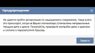 Не удается пройти авторизацию по защищенному соединению. Чаще всего это происходит, когда на Вашем компьютере установлена неправильная текущая дата и время. Пожалуйста, проверьте настройки даты и времени в системе и перезапустите браузер.(уже пробовал)