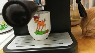 Когда нагревается вода в кофемашине, из места, откуда идёт подача воды, начинает сочится вода, идёт пар. После того, как набираешь кофе, во включённом состоянии продолжает капать.
