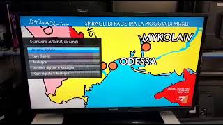 В новом, только подключённом телевизоре в левом верхнем углу в зелёном квадрате стоит буква К, ниже W, ниже 1. Сверху название ТВ lc-32hg3142